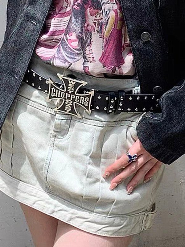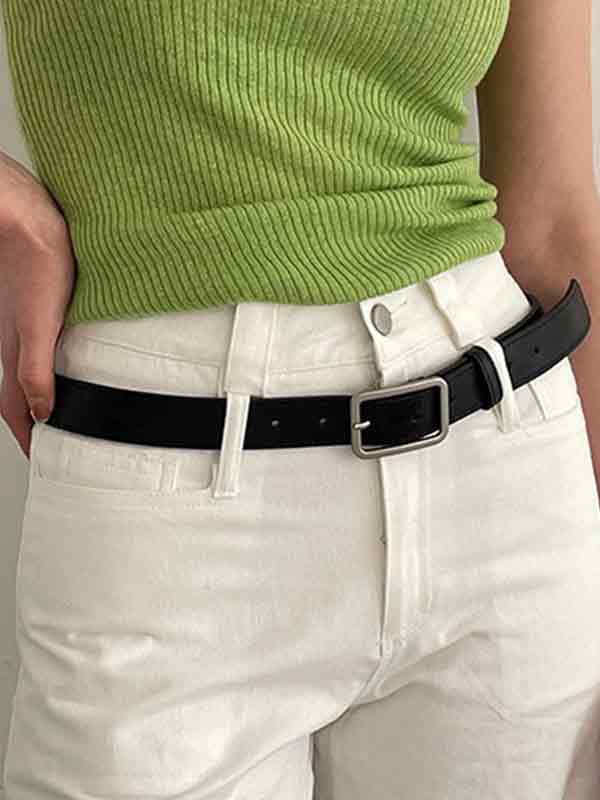 Vintage Fur Stitching Eyelet Metal Buckle Belt