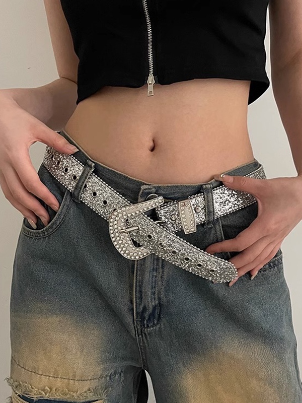 Y2K Sequin Rhinestone Buckle Belt