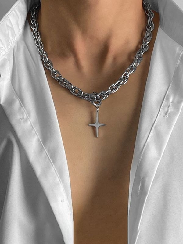 Men’s Cuban Chain Ring Splice Dagger Pendant Necklace