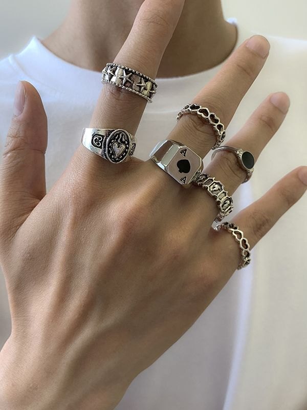 Men’s 4pcs Carved Letter Pattern Ring Set