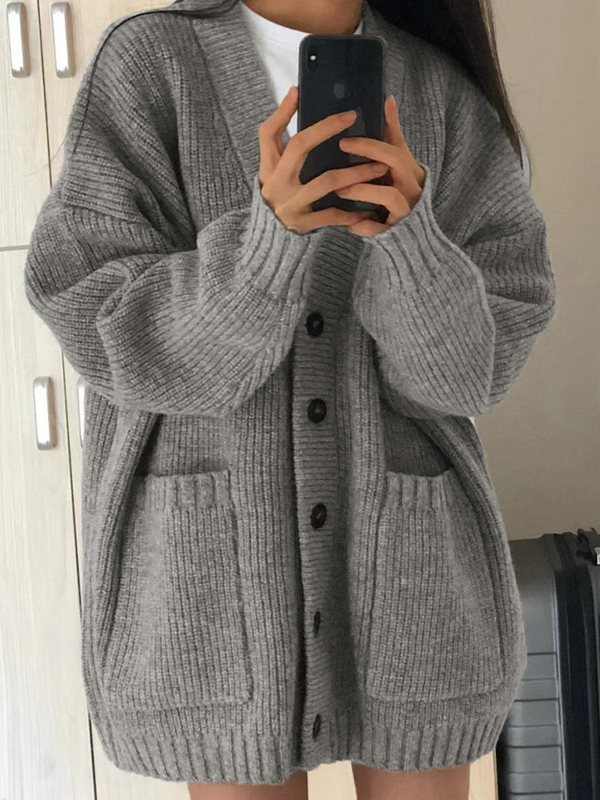 Mohair Solid Lantern Sleeve Baggy Cardigan