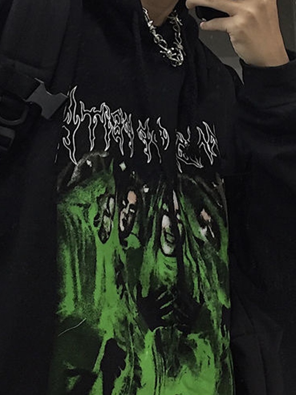 Men’s Hip Pop Letter Print Oversized Hoodie