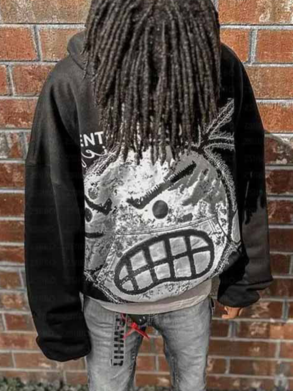 Men’s Hip Pop Shadow Print Oversized Hoodie