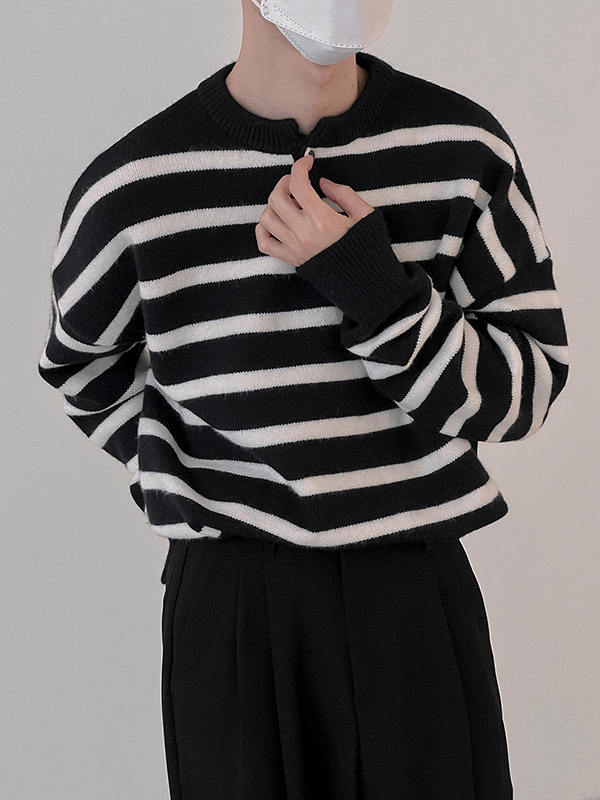 Men’s Contrast Color Stripe Pullover Knit Sweater