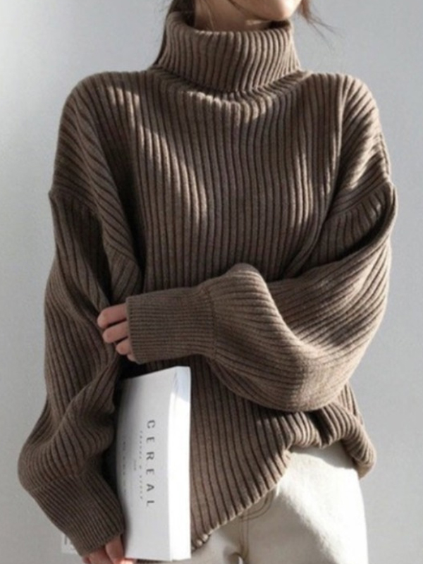 Solid Turtleneck Ribbed Knit Sweater