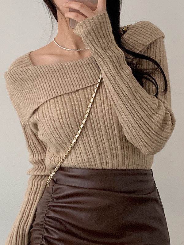 Solid Off Shoulder Knit Sweater