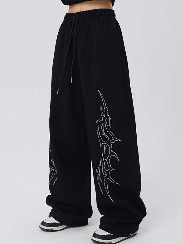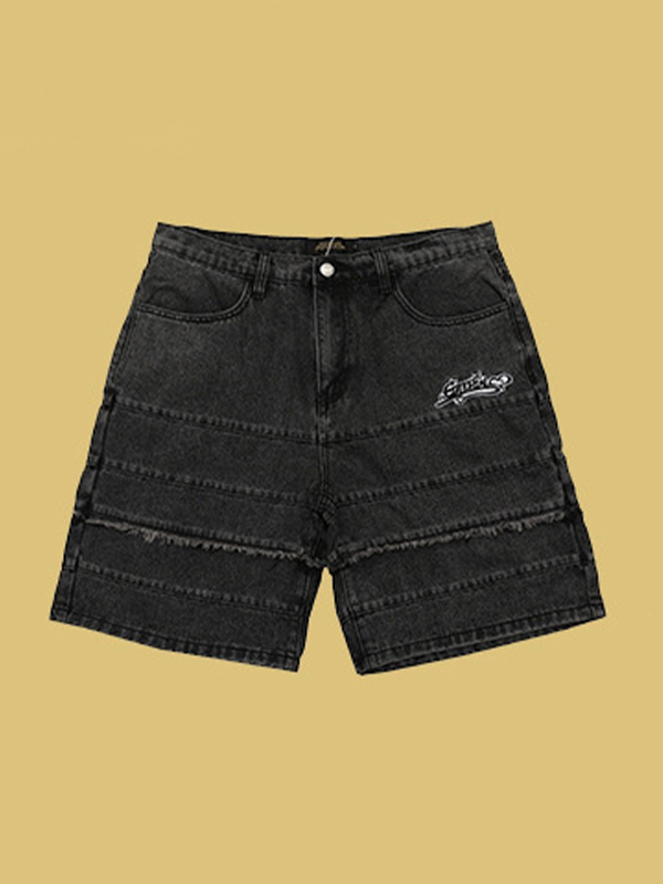 Men’s Back Embroidered Distressed Straight Leg Jeans