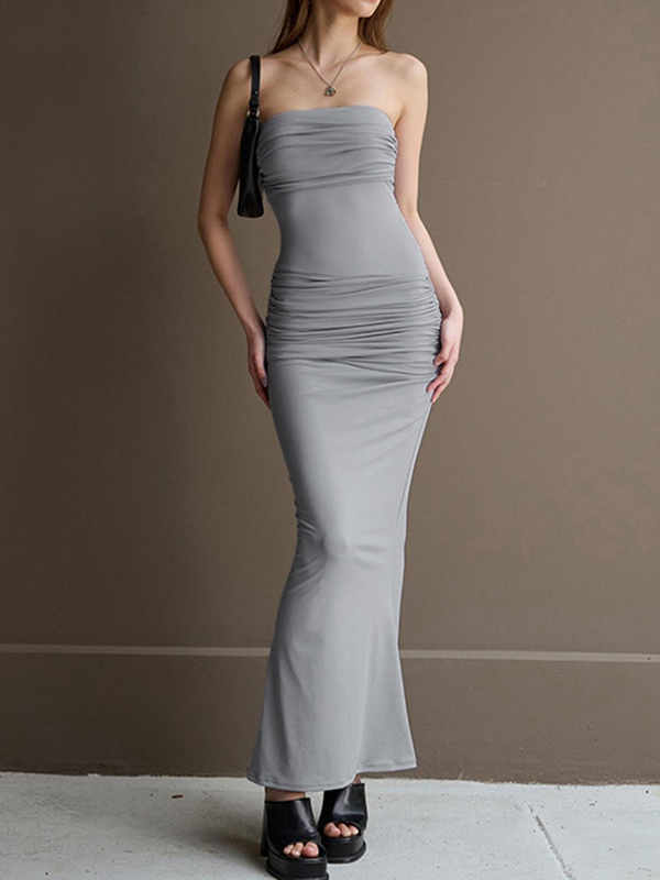 Sleeveless Bandeau Pleated To Cover Hips Maxi Dresses