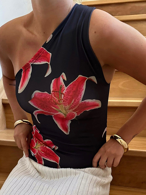 Dark Style Print Crew Neck Cropped Short Sleeve Tee