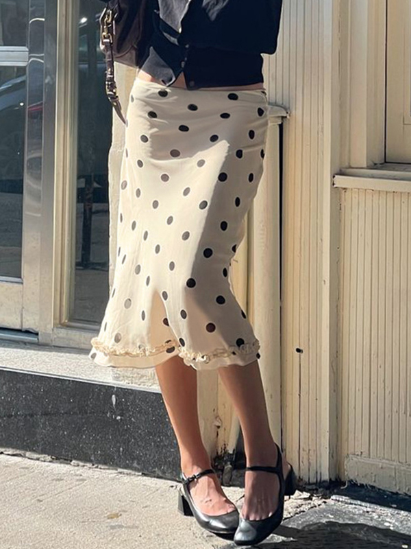 Vintage Polka Dot Wooden Trim Maxi Skirt