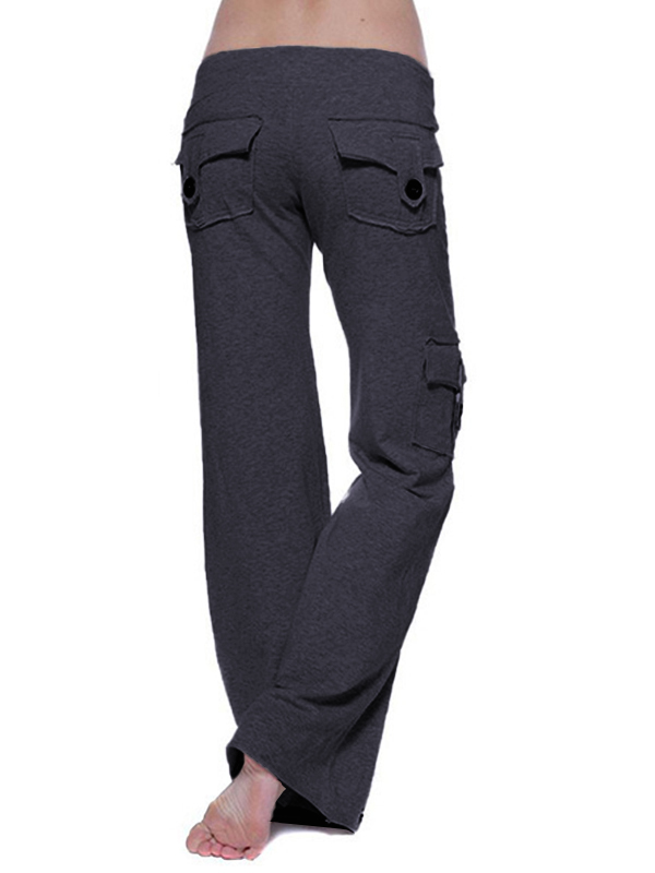 Button Pocket Stretchy Waist Straight Leg Pants