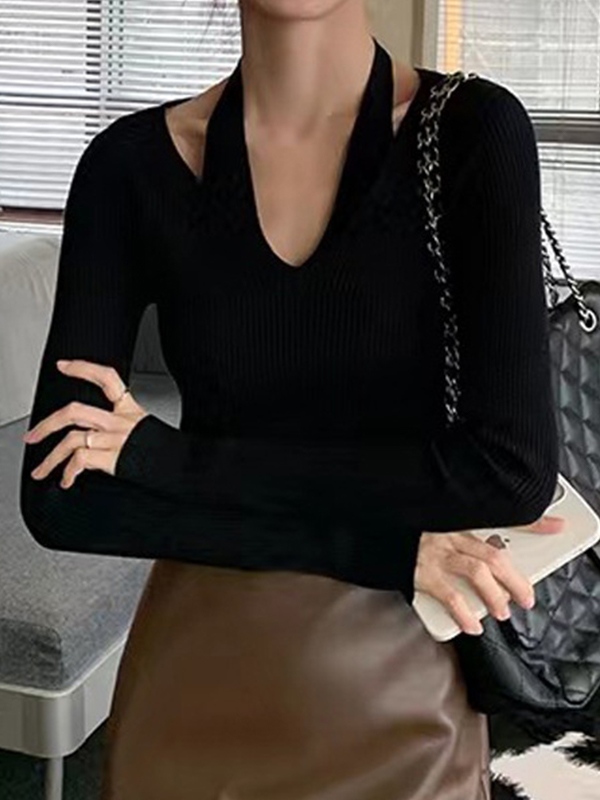 Solid Cutout Backless Twist Back Long Sleeve Knit