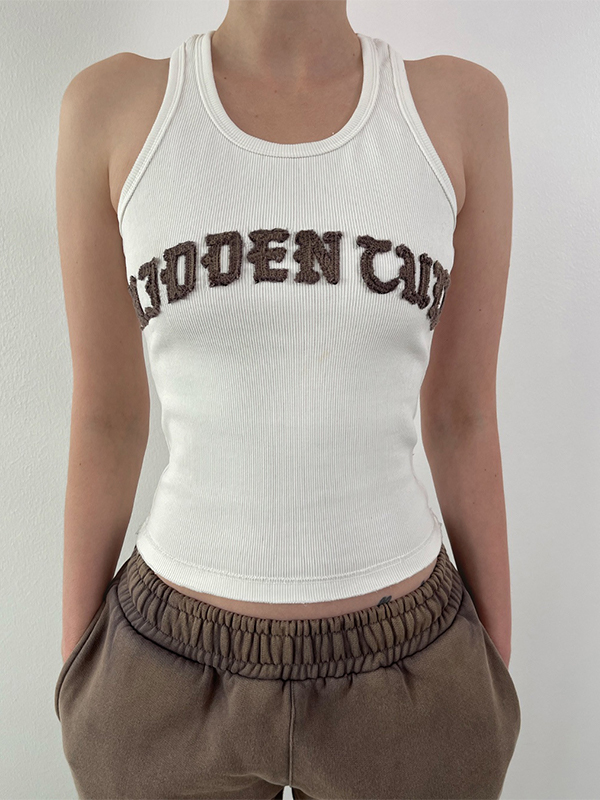 Letter Embroidery Short Style Navel Bare Tank Top