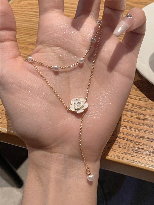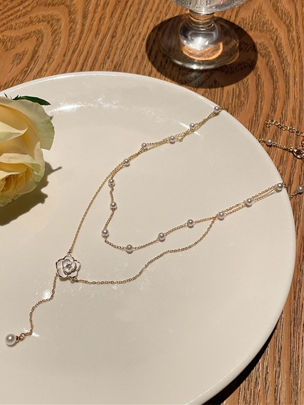 Be the first to review “Double Layered Pearl Camellia Decor Necklace”