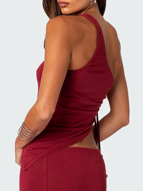 Be the first to review “One Shoulder Lace-up Asymmetry Tank Top”