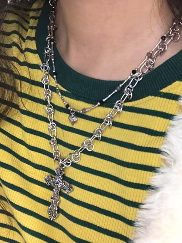 Men’s Cuban Chain Ring Splice Dagger Pendant Necklace