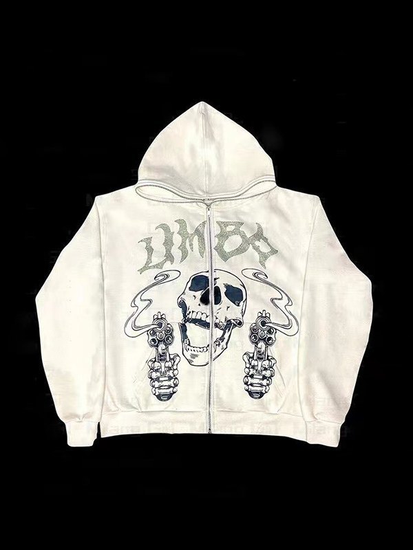 Men’s Rhinestone Letter Skull Black Zip Up Hoodie