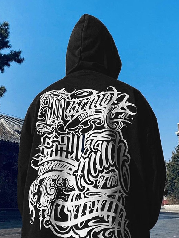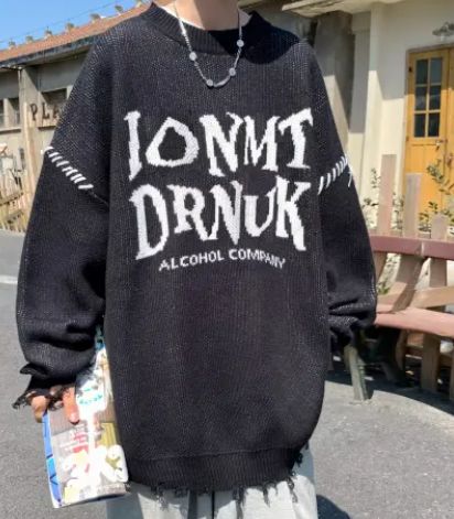 Men’s Letter Print Stitching Decor Tassel Hem Sweater