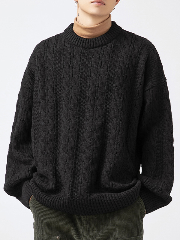 Cable Work Solid Color Round Neck Sweater