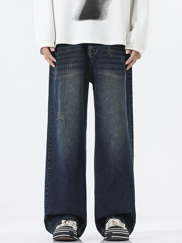 American Retro Cat Whiskers Straight Loose Jeans
