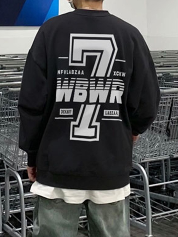 Men’s Vintage Number Letter Fleece Long Sleeve Tee