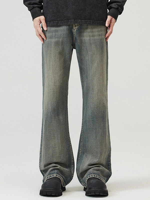 Retro Heavy Industry Washed Bamboo Stripes Loose Jeans